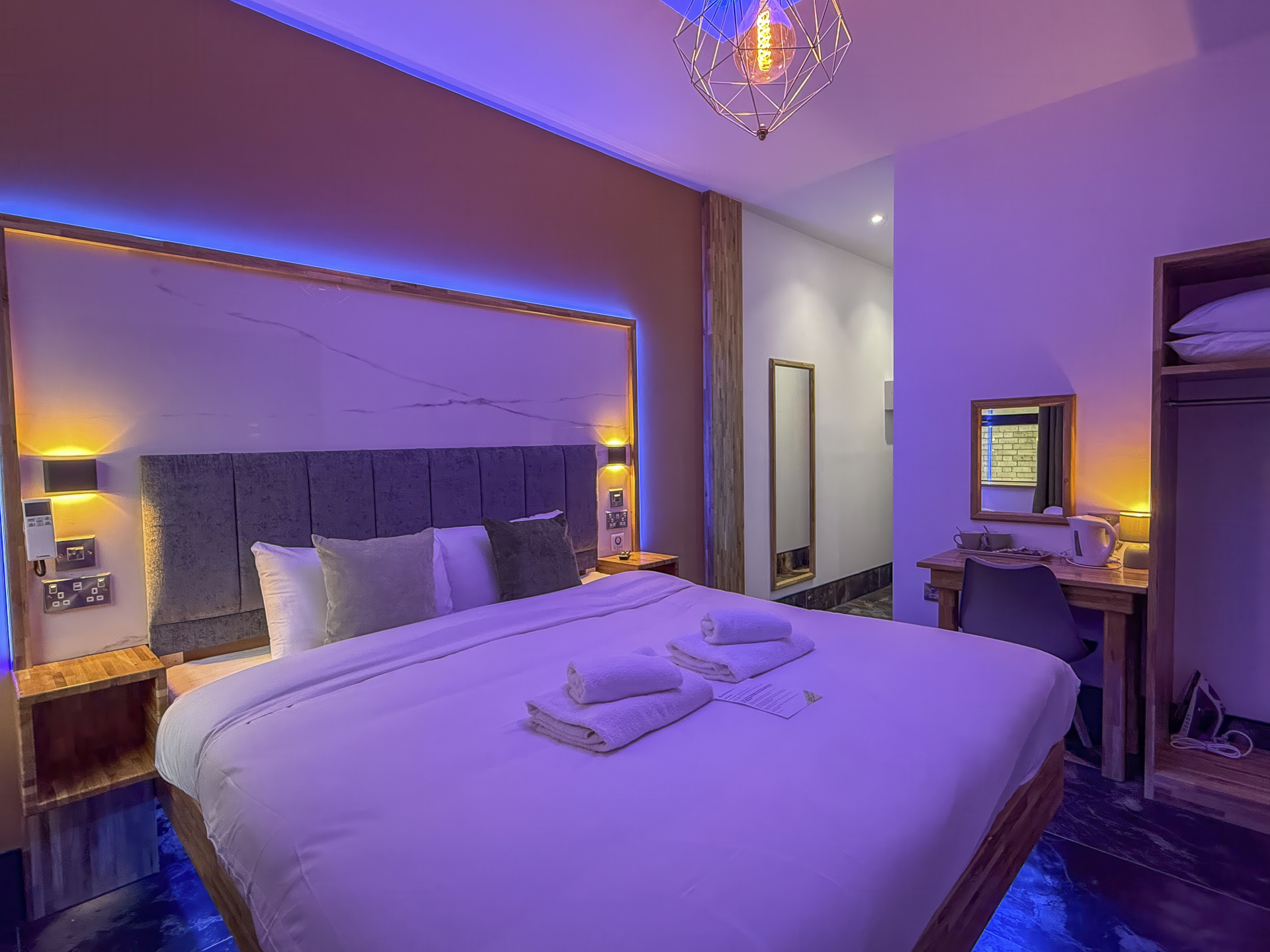 Rooms are spacious and comfortable, featuring a selection of king size and family beds, large Smart TV’s, walk-in showers and much more.